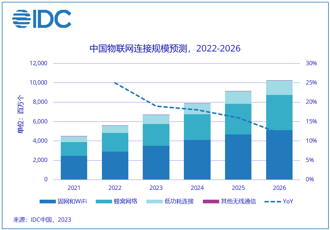 《"十四五"國家信息化規劃》提出,到2025 年,以5G、物聯網、云計算、工業互聯網等為代表的數字基礎設施能力達到國際先進水平。中國正大力推動物聯網與其他新一代信息技術加速集成和融合,物聯網連接規模和應用持續增長。IDC預測,2022年達56億個,到2026年將增至約102.5億個,...