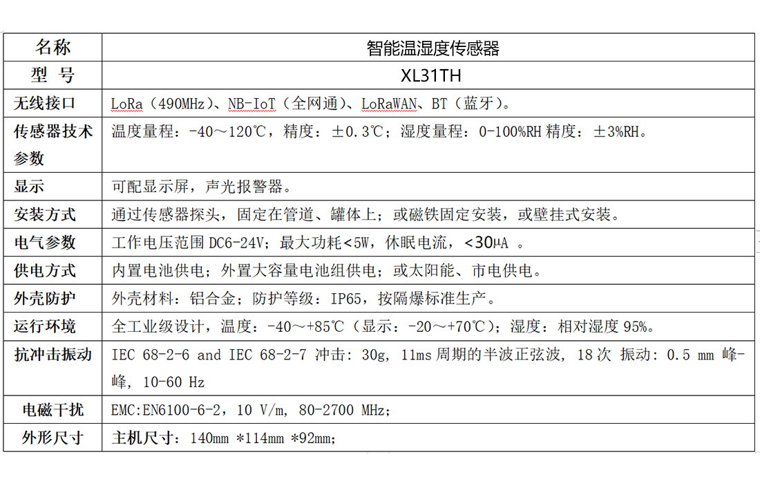 XL31TH智能溫濕傳感器,是按低功耗、隔爆標準研發、設計、生產。用于監測,化工、醫藥等化學物品生產、儲存過程中,特定生產場所、特定儲藏環境下的溫濕度。
