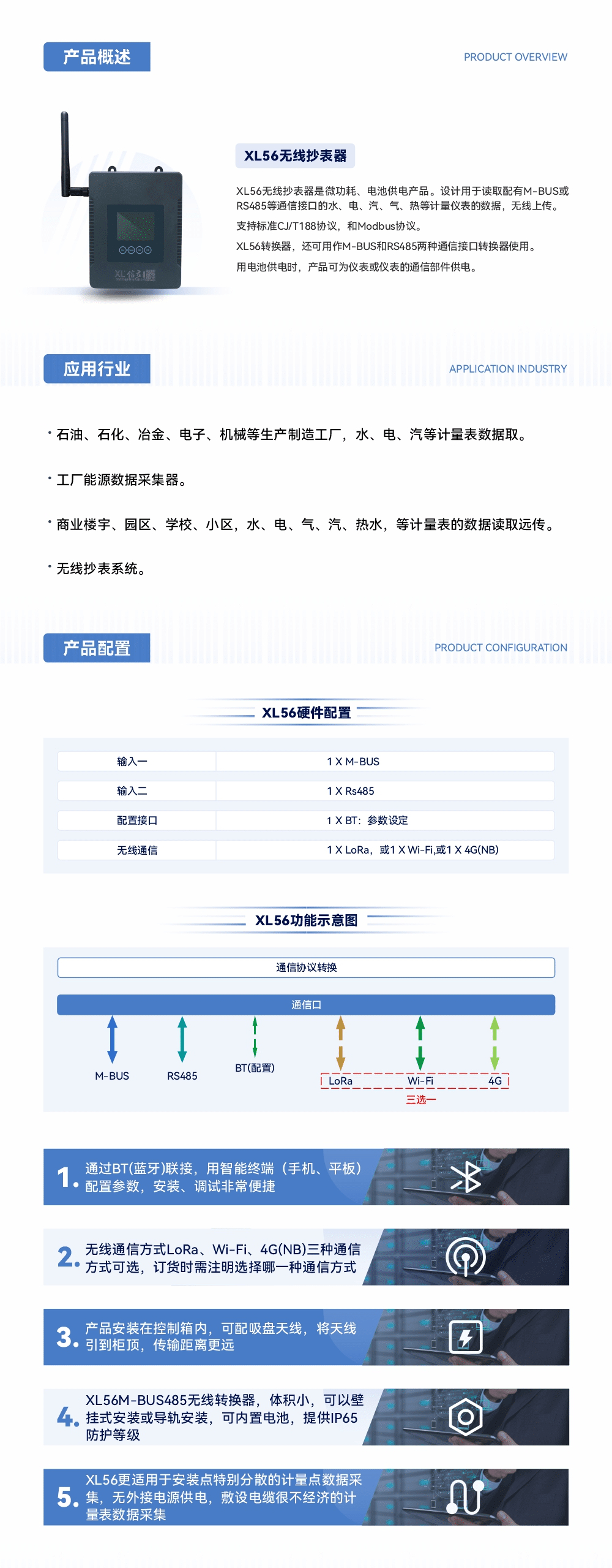 XL56無線轉換器,也可實現M-BUS和RS485兩個通信接口相互轉換。
