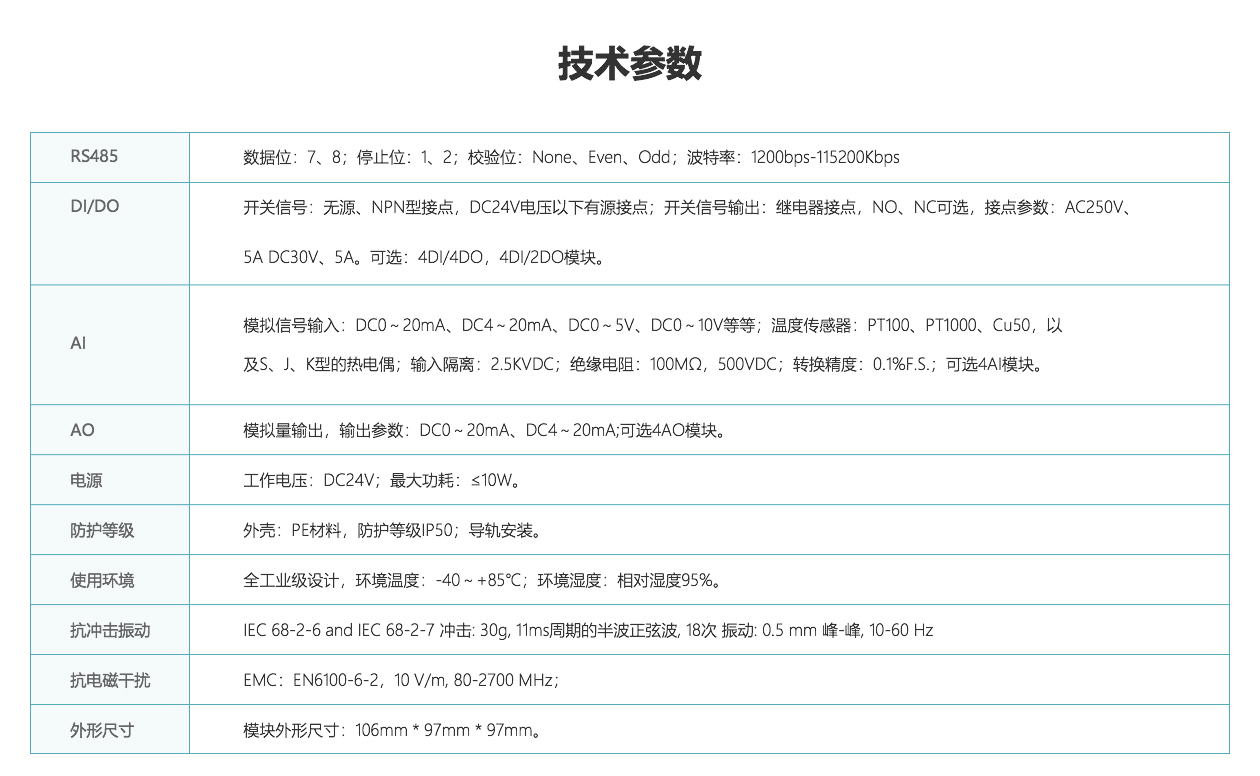 I/O模塊可獨立使用,支持RS485和標準的Modbus RTU通信協議輸出數據。
