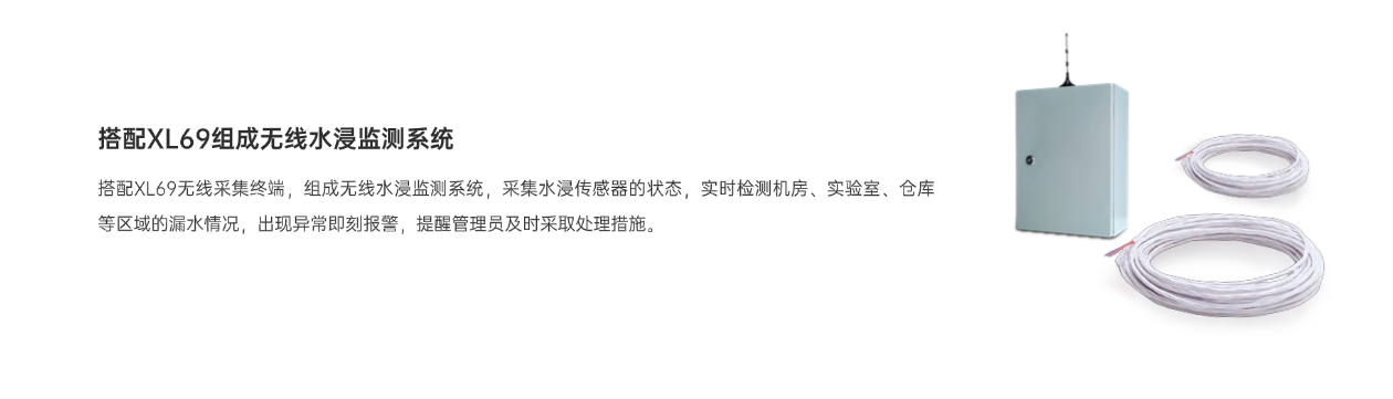 XLSWL水浸傳感器,是專門為了檢測(cè)機(jī)房、實(shí)驗(yàn)室、倉(cāng)庫(kù)等區(qū)域漏水位置而研發(fā),可快速檢測(cè)到漏水位置。當(dāng)發(fā)生漏水時(shí),XLSWL水浸傳感器將信號(hào)傳輸至XL69無(wú)線采集終端,進(jìn)行數(shù)據(jù)處理,將報(bào)警信號(hào)及定位數(shù)據(jù)上傳至監(jiān)控平臺(tái),以便工作人員及時(shí)消除現(xiàn)場(chǎng)隱患,避免發(fā)生重大事故和損失。