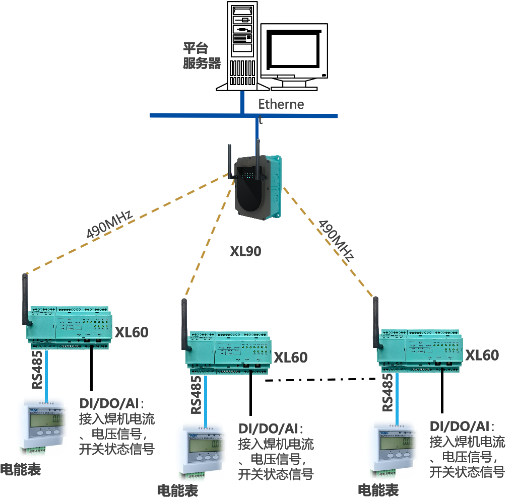 建議每32臺焊機配1臺XL90網關;每臺焊機,配1臺XL60