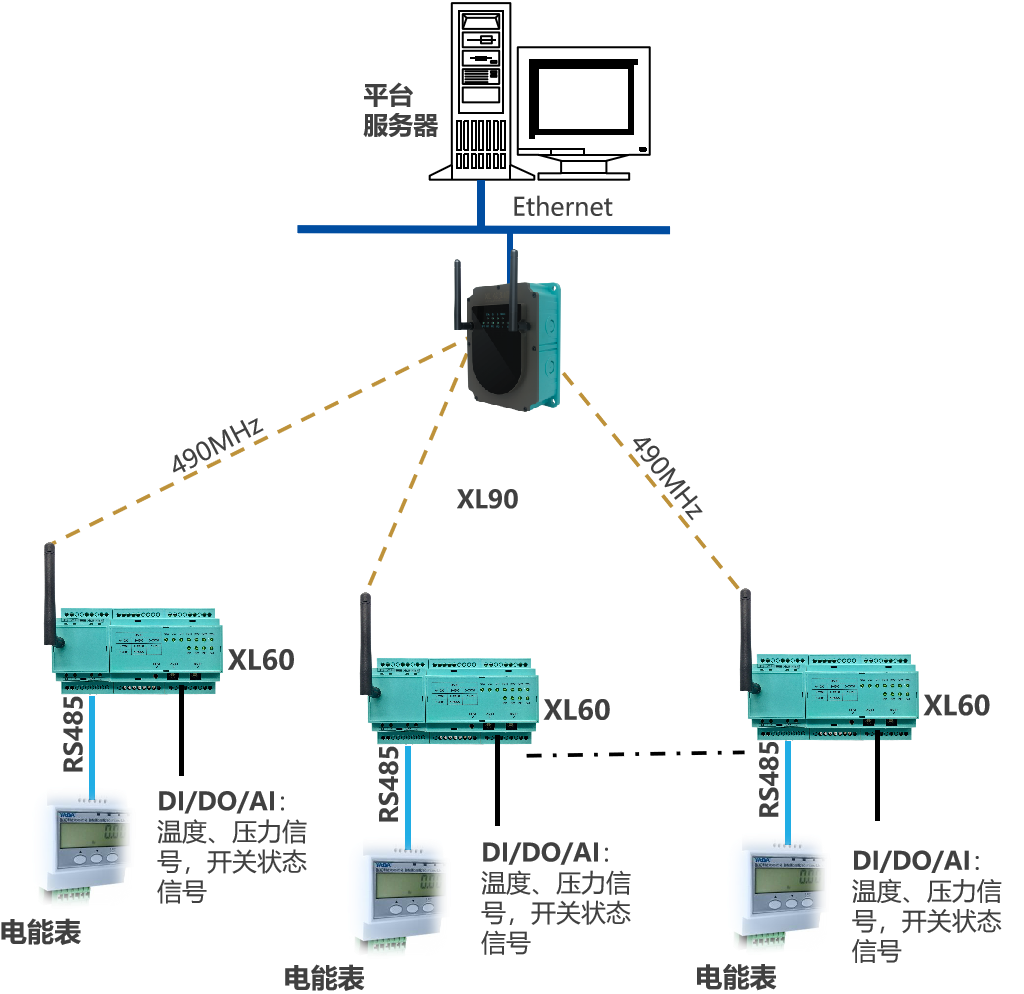 XL90物聯網關,是系統的核心,從XL60上讀取數據,進行協議轉換、通訊處理,通過企業內部LAN,推送數據至企業生產監控平臺