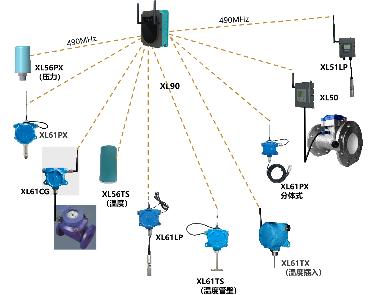 1臺XL90物聯網關,構建兩個獨立的LoRa通訊網絡,可接入64(理論上不受限制)臺智能傳感器或智能采集裝置