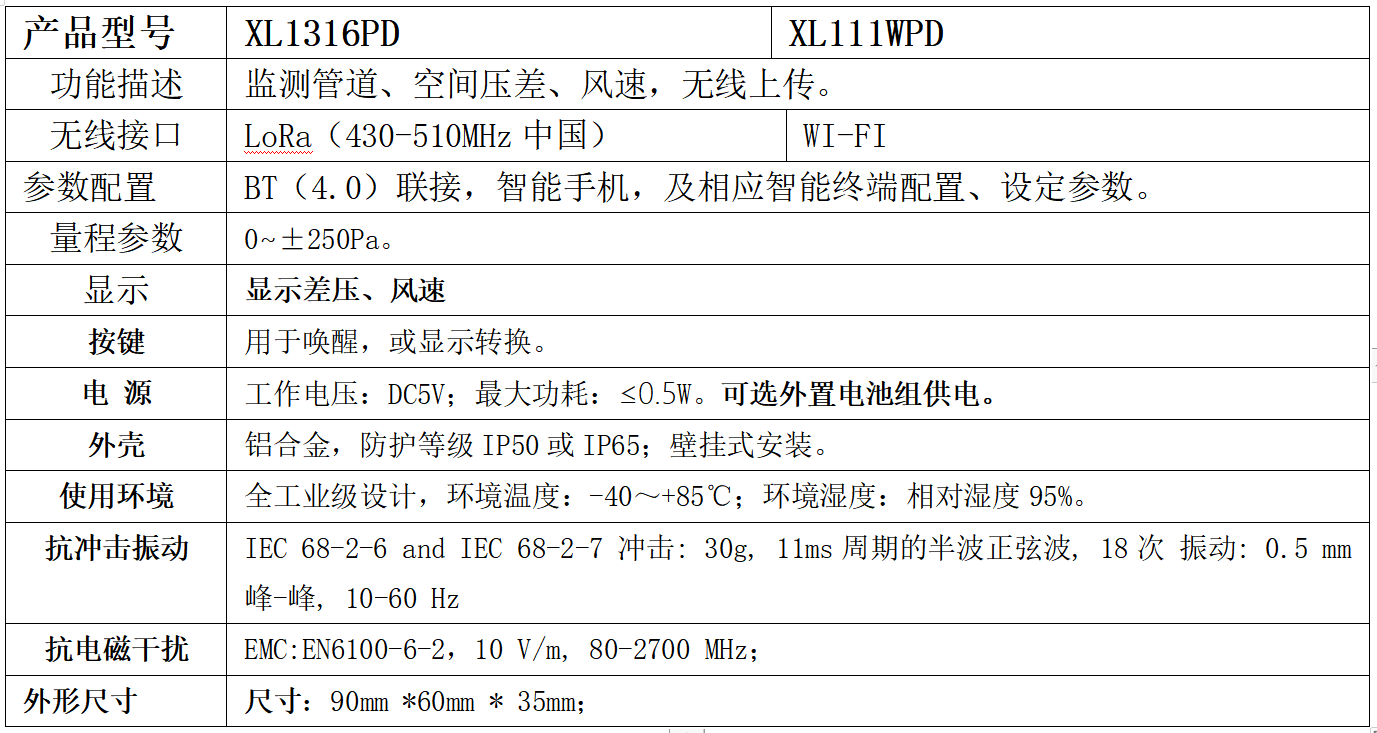 XL13無線風速(差壓)傳感器,用于采集排風管道內風速,潔凈空間、車間,實(試)驗室,等空間的大氣差壓。集傳感元件、信號處理,無線傳輸于一體,按低功耗、電池供電標準設計,體積小,安裝接線簡單、便捷。