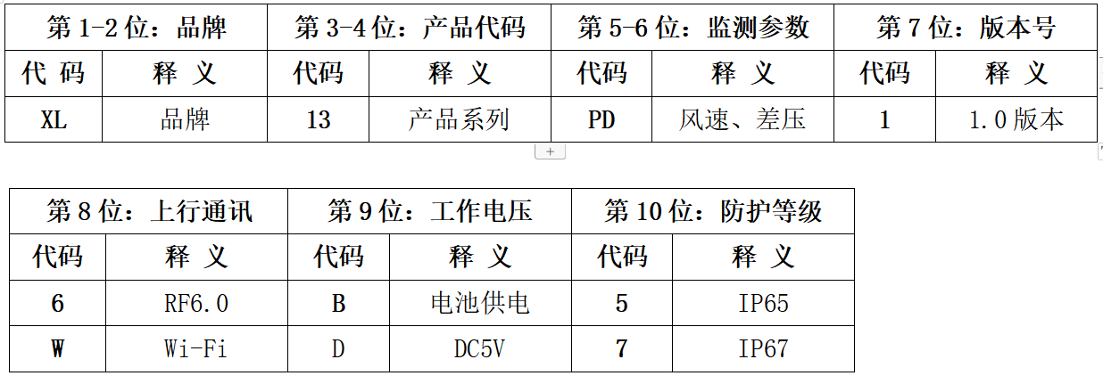 三、XL13無線風速(差壓)傳感器訂購信息表