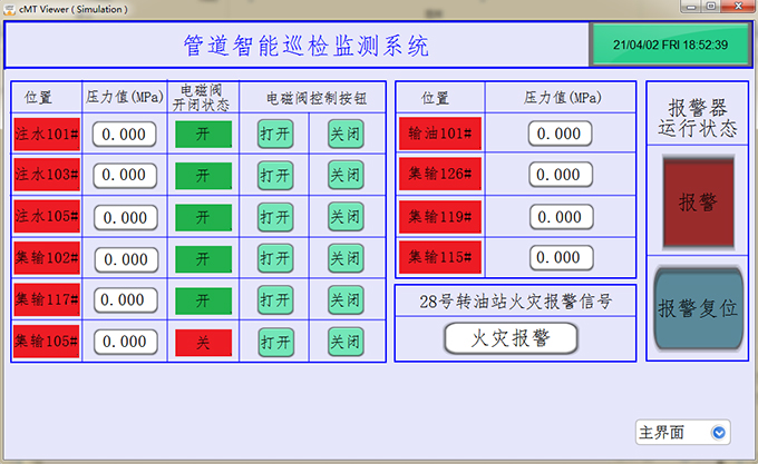 當出現壓力過大時,中控室會發出聲光報警提醒工作人員,工作人員可通過觸摸屏上的按鈕關閉或打開閥門,防止原油泄漏。大大降低的安全事故,節省了人工成本。