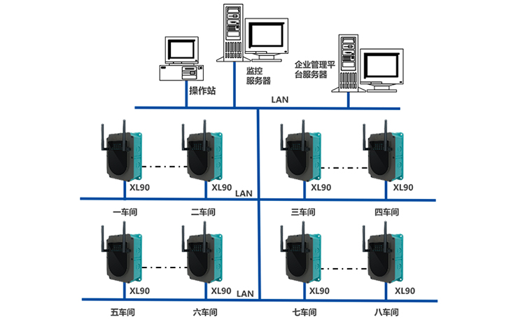 ?物聯網關安裝在車間辦公室附近,通過網線從車間辦公室接入企業局域網(LAN);