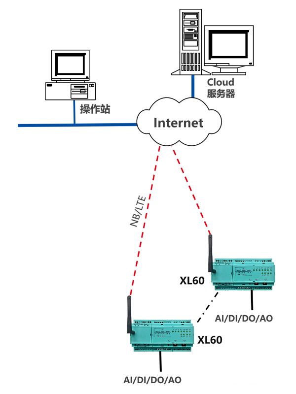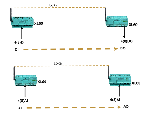 兩臺XL60可實現(xiàn)模擬、開關信號透傳。