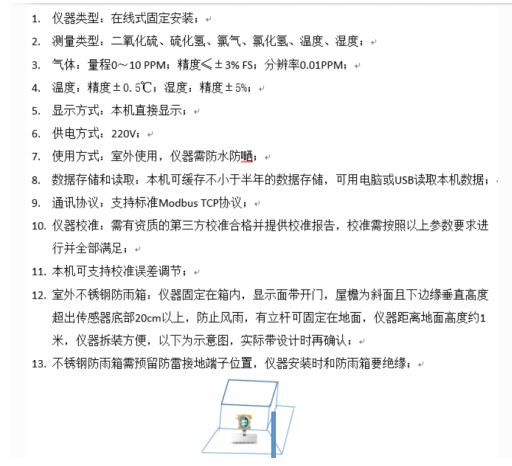 1、按技術要求,氣體傳感器、二氧化硫、硫化氫、氯氣、氯化氫等技術參數都達到如下要求: