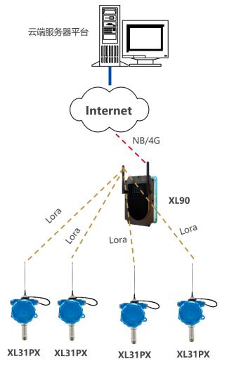 1)XL31PX智能壓力傳感器與XL90物聯(lián)網(wǎng)關(guān)之間采用LoRa無(wú)線通信技術(shù)進(jìn)行數(shù)據(jù)傳輸,在罐區(qū)環(huán)境傳輸半徑大約500米(理想傳輸距離10公里),能夠滿足現(xiàn)場(chǎng)的通信需求。