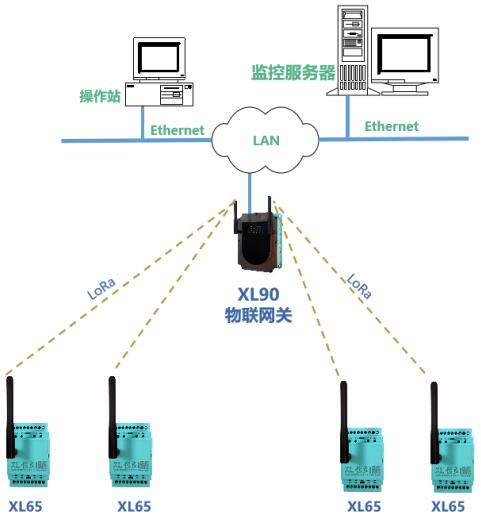 采用LoRa無線傳輸,需選XL90網關作為無線接收端,進行協議轉換和數據轉發。LoRa頻段可按不同國家、地區規定供貨。