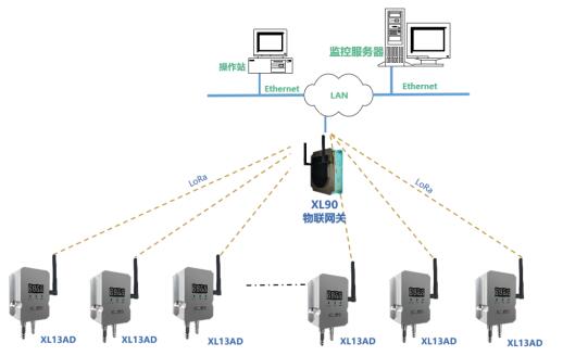 網絡層:XL13AD差壓傳感器通過LoRa無線傳輸數據至XL906物聯網關XL97網關終端,網關可選EthernetWi-Fi4G等多種方式將差壓數據傳輸至監控平臺。