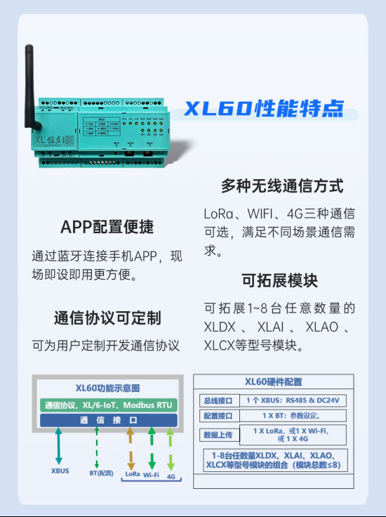 選擇 XL60 無(wú)線(xiàn)采集裝置 ,搭配 I/O 模塊,接收開(kāi)關(guān)量信號(hào)和輸出開(kāi)關(guān)量信號(hào)。