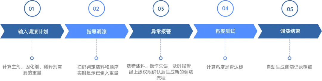 l 實現(xiàn)調漆過程可追溯,記錄每一步調漆操作、質量、用料等,出現(xiàn)異常能快速定位問題;