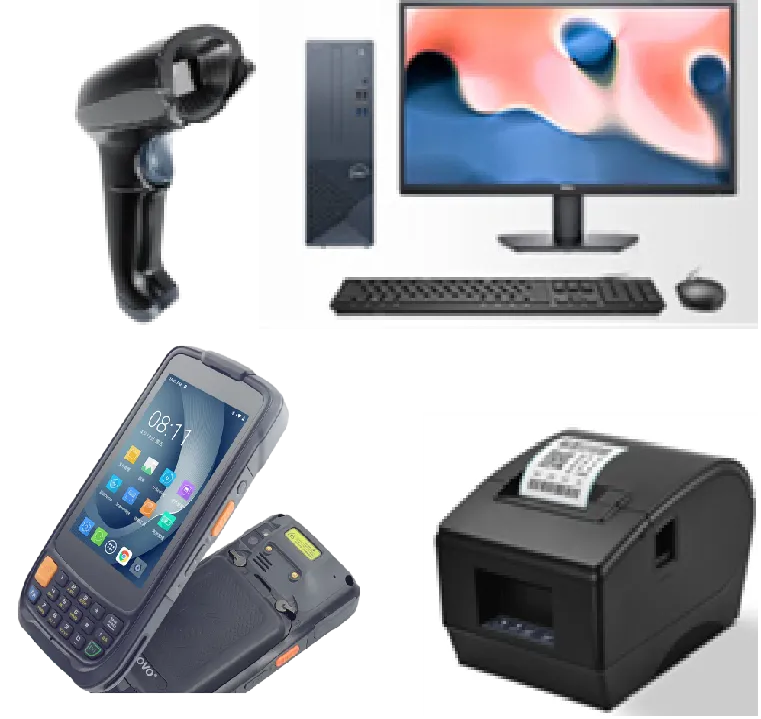 出入庫終端由電腦、標簽打印機、掃描槍及掌上PDA組成。